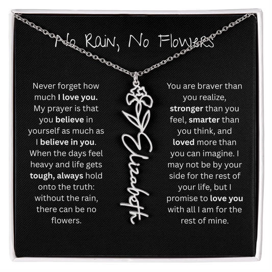 Personalized Birth Flower Name Necklace - No Rain No Flowers Edition